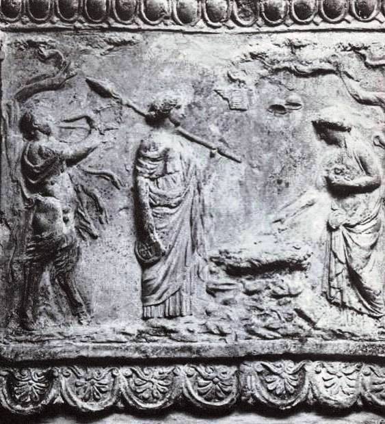 Rural scene of sacrifice on a Roman terracotta plaque.