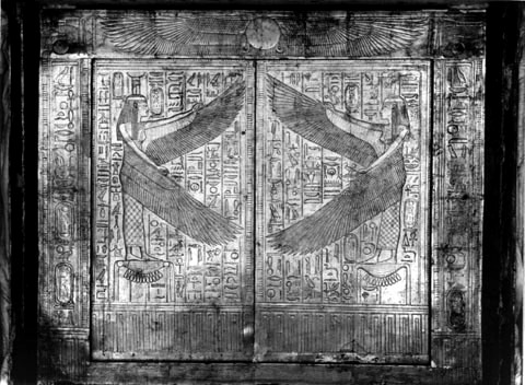 The Bible specifies 'two cherubim of hammered gold with wings spread upward,