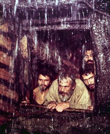 Noah and his sons peer out from the Ark in ‘The Bible’