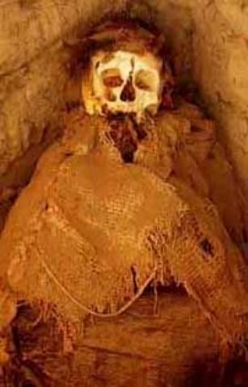 A Peruvian mummy in an open grave