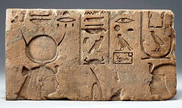 The goddess Hathor faces Pharaoh Necko II; the inscription above the goddess (left) may read ‘I grant you every country in submission.’ This would include the small country of Judah.