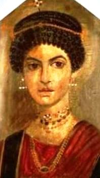 Hairstyle, jewellry and clothes of a wealthy 2nd century AD woman; Fayum coffin portrait