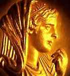 Golden profile of a woman from ancient times