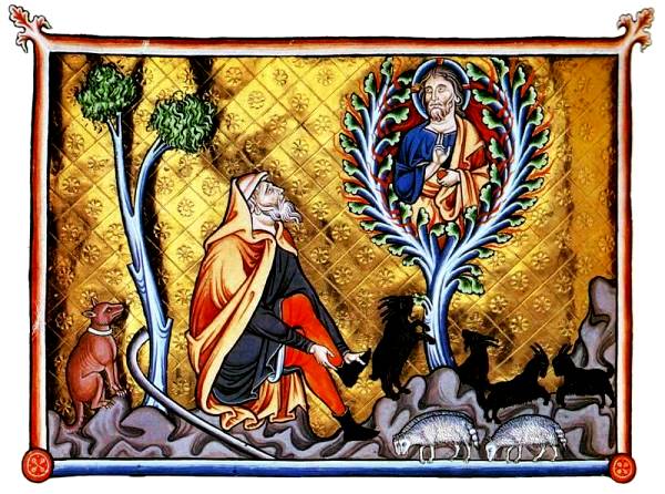 ‘Moses sees God in the Burning Bush’, illuminated manuscript