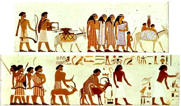 Cartoon of Middle Eastern travellers from the tomb at Beni Hasan, Egypt