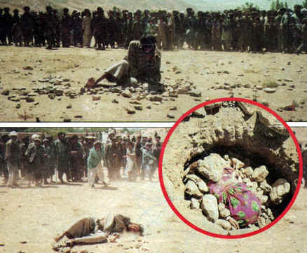Woman being stoned to death, modern photograph