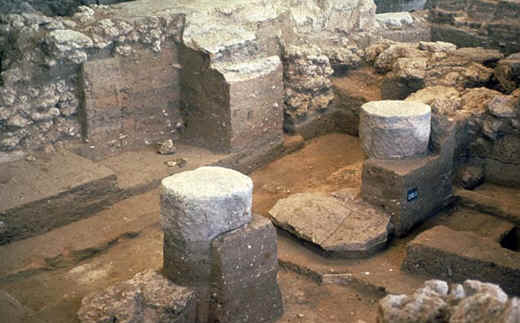 Excavated Philistine temple at Tel Qasile: note two pillars, as in the story of Samson’s death