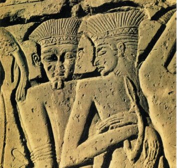 Philistine warriors captured by the Egyptians, from the wall relief at Medinet Habu